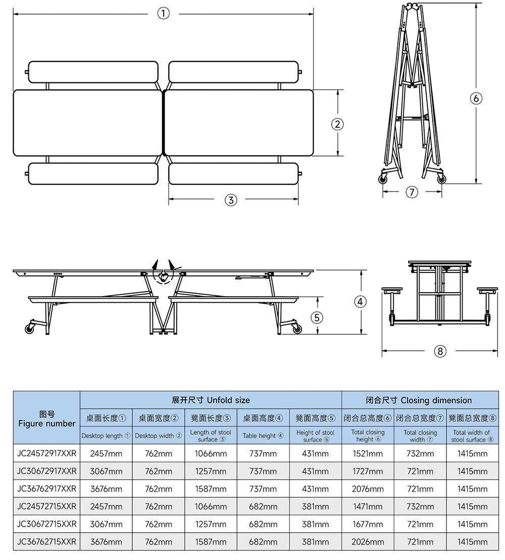 ●Product function: the whole table can be folded in parallel, greatly saving storage space. The mechanical torsion spring design makes it easier to unfold or fold