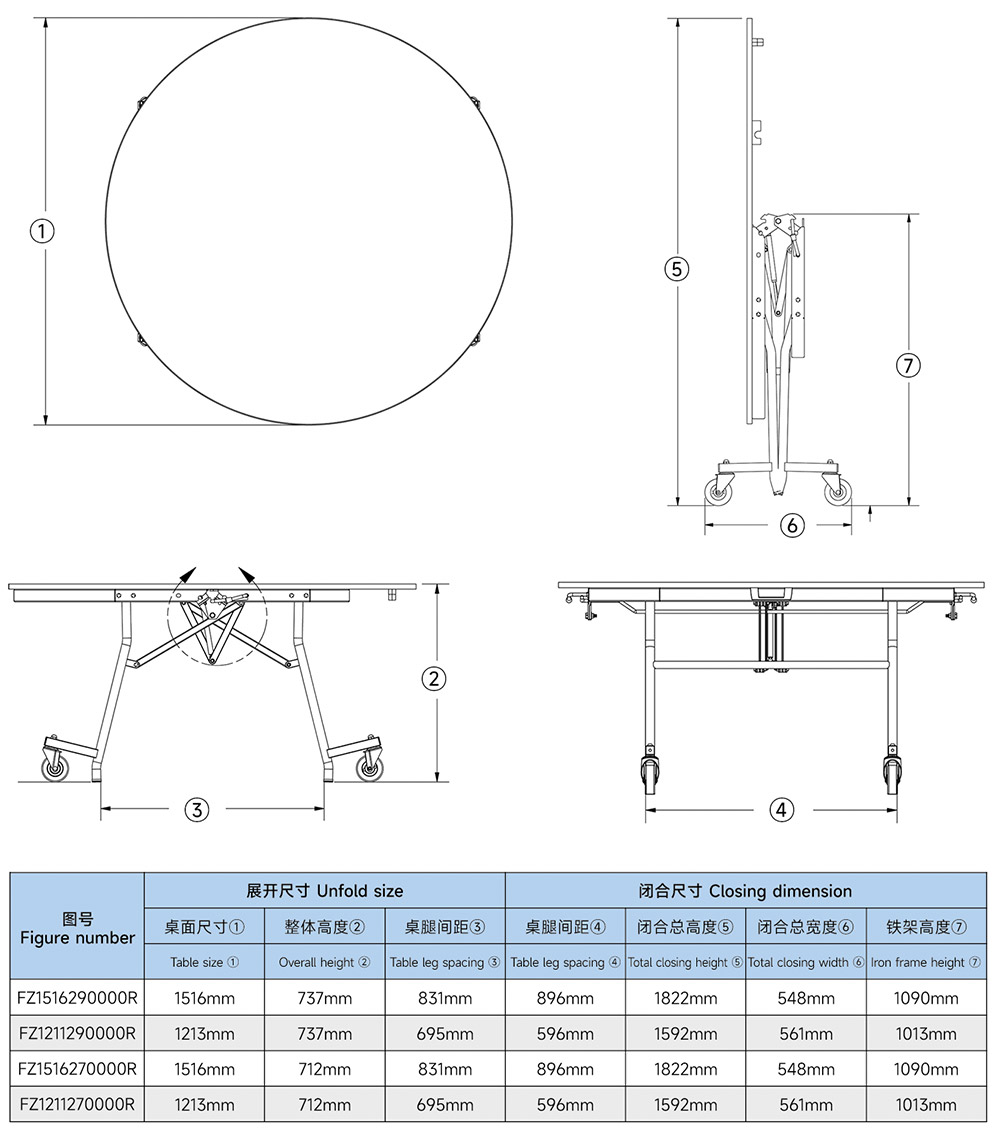●产品功能:整张桌子可以平行折叠,极大节省储存空间,气缸设计,整个桌面翻转折叠